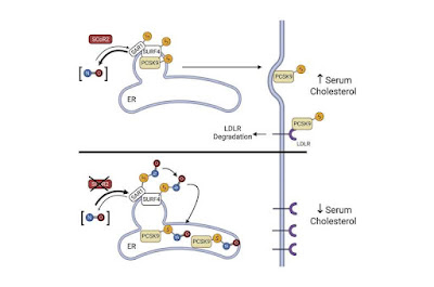 Los receptores de LDL, que se encuentran en la superficie de las células hepáticas eliminan el colesterol de la sangre y son fundamentales para la regulación del colesterol, lo que reduce los niveles séricos. PCSK9 en el torrente sanguíneo controla la cantidad de receptores de LDL marcándolos para su degradación. Por lo tanto, los agentes que inhiben PCSK9 aumentan el número de receptores de LDL que eliminan el colesterol.